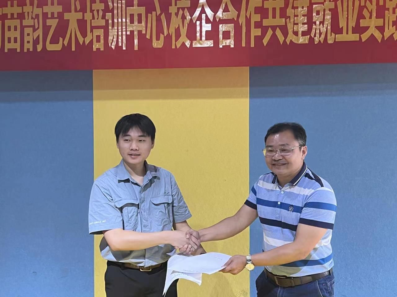 最后,我院一行到琼中苗韵艺术培训中心开展校企合作签约,我院毕业生李运圣表示要继续努力,不断吸纳我校优秀毕业生,并建立长期合作。