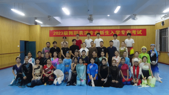 为全面测试2023级舞蹈表演专业新生的专业能力水平,切实做好入学资格审查相关工作,于2023年9月19日至20日19:00在综B102教室举行了“2023级舞蹈表演专业新生入学专业考试”。副院长庄小清及舞蹈系全体教师出席本次考核,2021级舞蹈表演班和2022级舞蹈表演班到现场观摩。