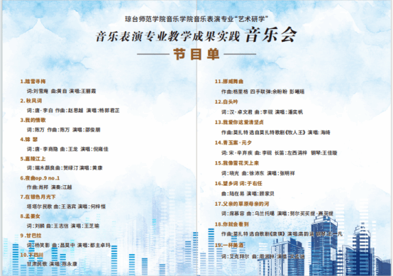 11月21日,海南微城剧场成功举办琼台师范学院音乐学院“音乐表演专业教学成果实践音乐会”。音乐表演系主任万媛媛、指导教师戈海涛、钢琴艺术指导张晓璐,及2021级音乐表演班、2022级音乐表演1班全体同学出席音乐会。