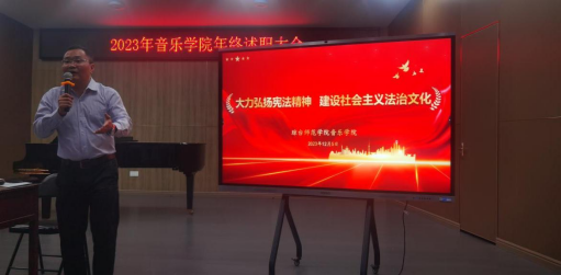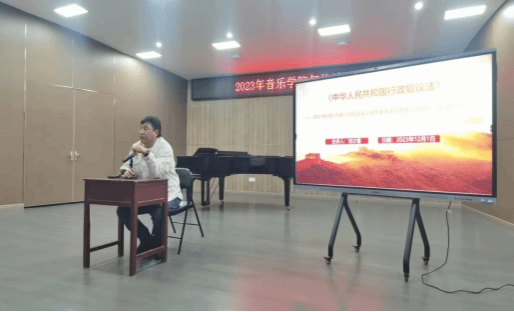 2023年12月5日,音乐学院组织全体教职工在综B101音乐厅开展学习宪法宣传周活动。出席本次活动的有学院领导刘才喜书记、贾志宏院长及全体教职员工。本次活动由刘才喜书记主持,本次宪法宣传周讲解会上,刘书记宣读了教育部、海南省教育厅、我校党政办发布的关于学习宪法宣传周相关文件和通知要求。