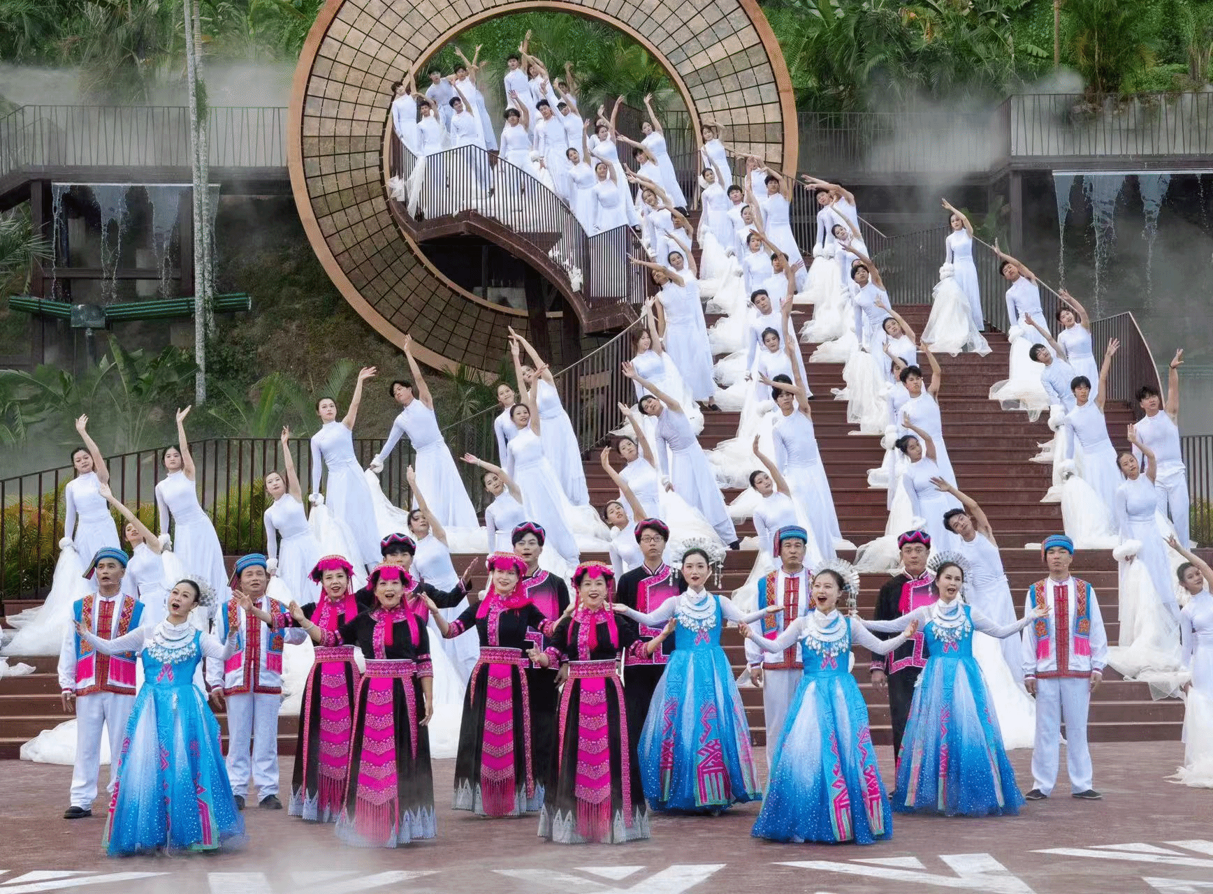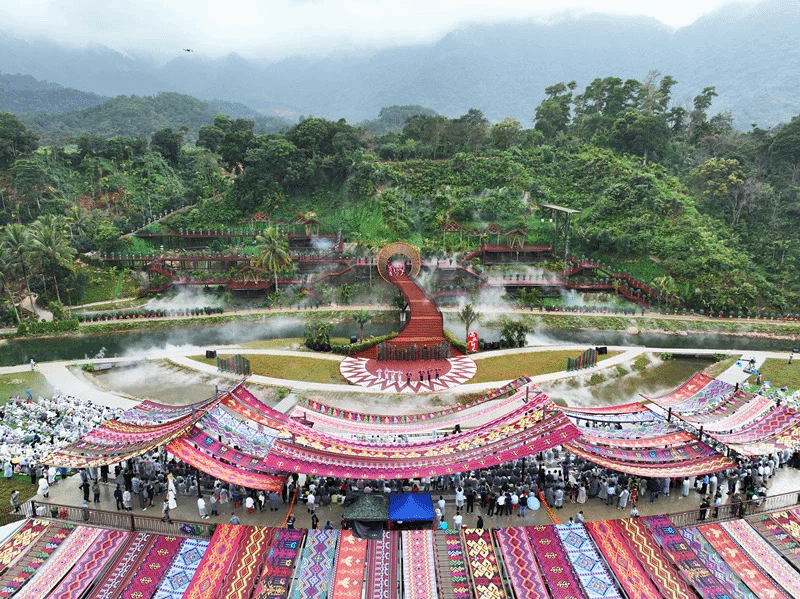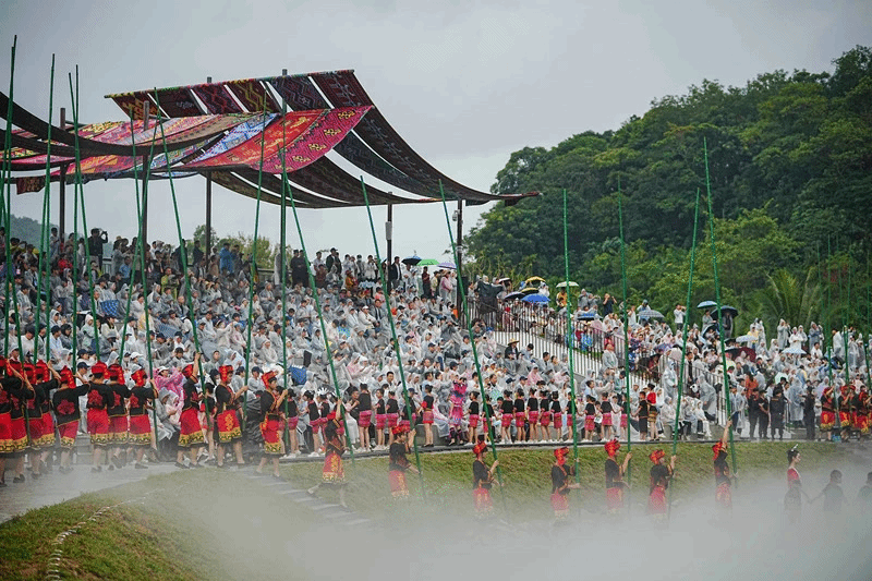 11月25日,2023年“雨林与您”体验活动(陵水主会场)暨“雨林·山水时光”实景演出在陵水黎族自治县本号镇小妹村举行。琼台师范学院音乐学院共388名师生参与本次演出。