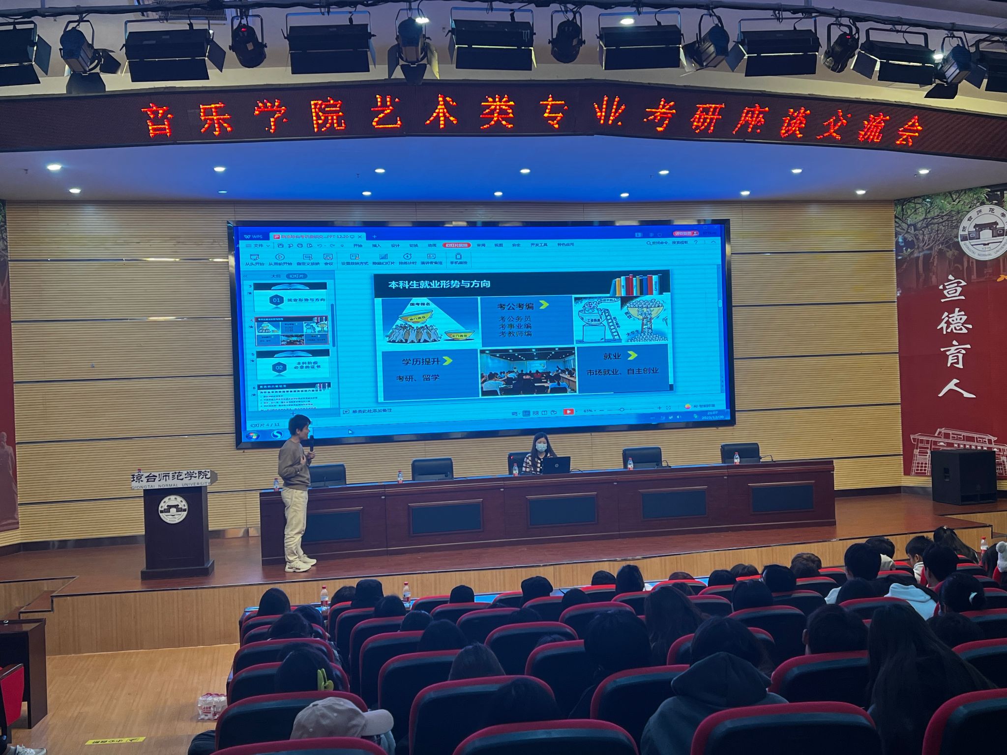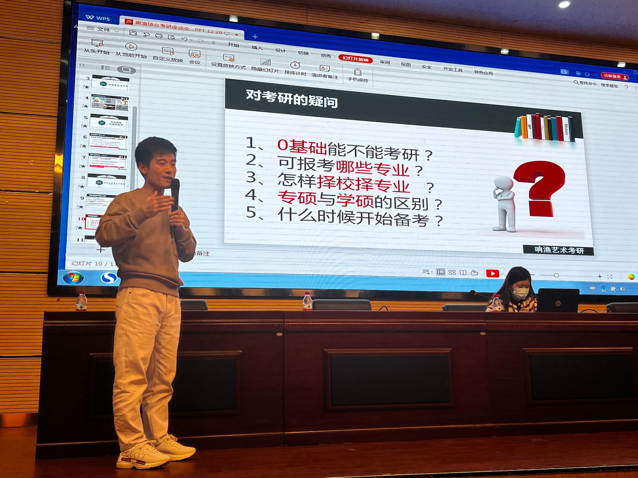 12月19日,音乐学院在图书馆报告厅成功举办了一场考研专题讲座。此次讲座邀请了海南大学优秀毕业生罗思浩作为主讲人,旨在帮助学生更好地了解考研的意义、政策解读等方面的情况。