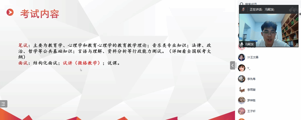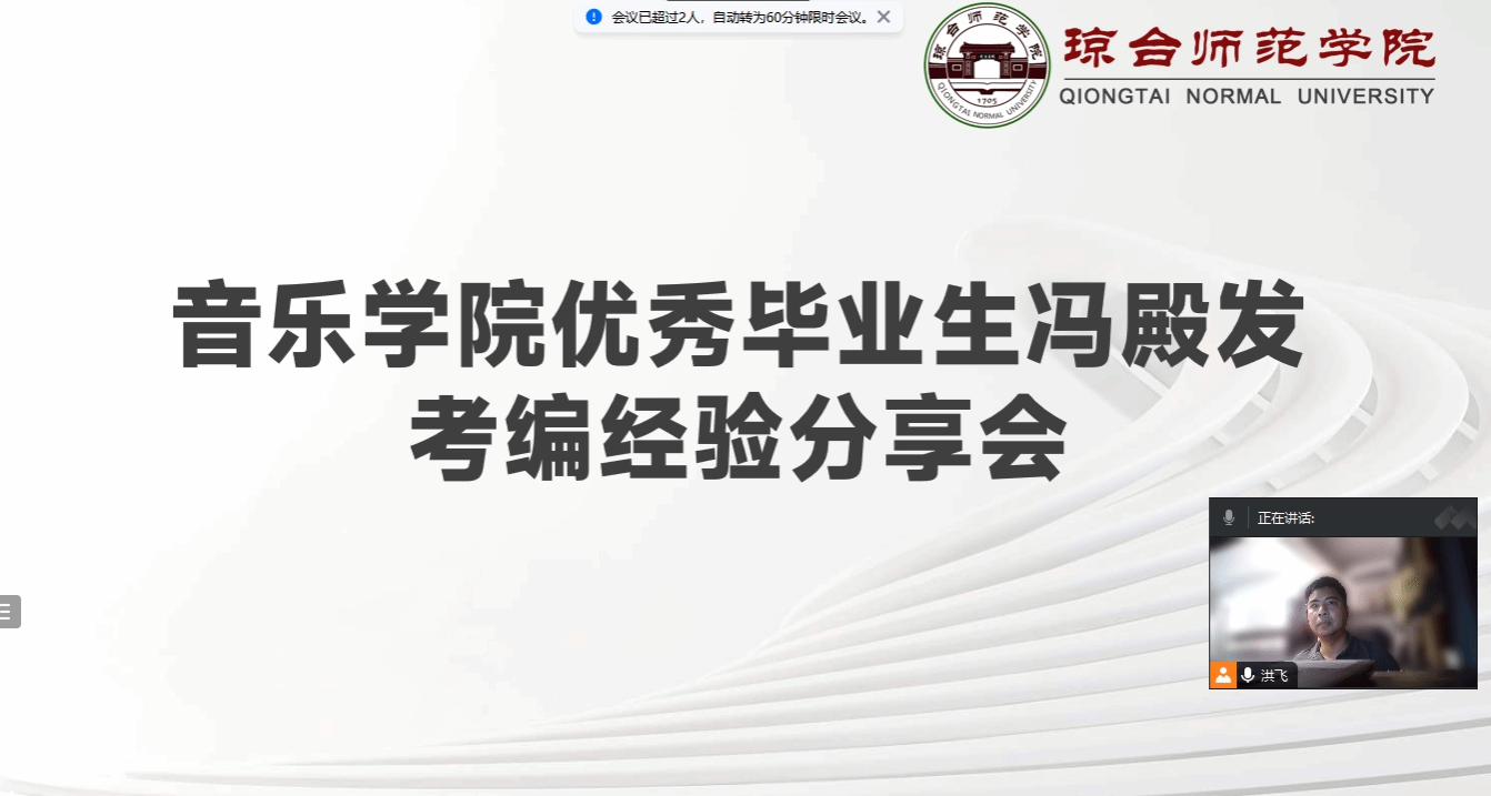 4月3日,音乐学院举办一场别开生面的线上考编经验分享会。此次活动特别邀请了现就职于海口海景学校的2023届优秀毕业生冯殿发作为主讲嘉宾,其丰富的考编经验和出色的成绩,为在音乐学院毕业生带来了一场精彩纷呈的分享会。