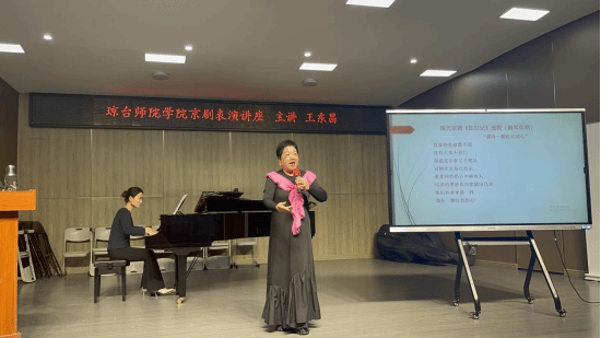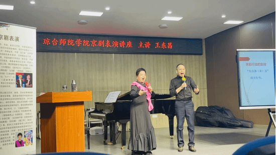 2024年12月5日晚上7点,音乐学院于综合楼音乐厅举行“京剧表演”讲座。主讲人王东昌、胡路,音乐表演系主任万媛媛,钢琴艺术指导葛畅及22音乐表演1班、24音乐表演2班、24音乐表演3班全体同学参与活动。