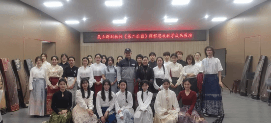 2024年12月25日上午10时,琼台师范学院桂林洋校区综合楼音乐实训厅内座无虚席,一场别开生面的音乐会在此圆满落幕。本次音乐会由吴立群副教授主导,以“《第二乐器》课程思政教学成果展演”为主题,成功展示了2023级音乐学1、2、3班全体辅修古筝学生的卓越风采。