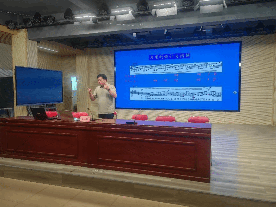 吴志辉副教授聚焦校园美育课后服务合唱社团的建设方式,针对一线教师在指挥技法中力度与速度的薄弱问题,进行现场指导并带领学员通过作品实操,成功解决了力度体现、速度转换不明确的问题。