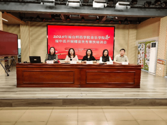为深入贯彻落实国家美育浸润计划和教育数字化战略行动,全力推进琼中县基础教育优质均衡发展,2025年4月17日,琼台师范学院音乐学院精心组建的师资团队奔赴琼中,开展椰苗美育师资帮扶培训活动。此次培训聚焦校园美育文化建设、AI技术赋能音乐课堂重塑、课后服务师资能力提质三大核心内容,为琼中县音乐教育事业注入新活力。