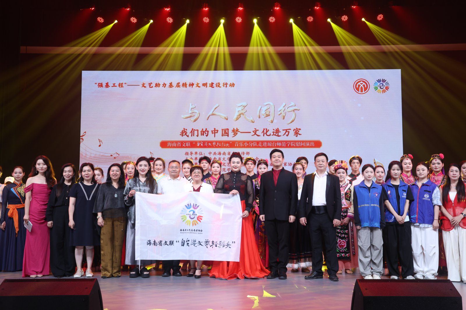2025年5月20日,一场以“与人民同行——我们的中国梦·文化进万家”为主题的海南省文联“自贸港文艺轻骑兵”音乐小分队慰问演出在琼台师范学院宣德堂圆满落幕。此次活动作为海南省文联“强基工程·文艺助力基层精神文明建设行动”的关键一环,得到了中共海南省委宣传部的高度重视与悉心指导,并由海南省文学艺术界联合会、海南省文艺志愿者协会精心策划承办,琼台师范学院倾力协办。学校党委副书记、党委委员、校长刘湘洪校长出席本次音乐会。