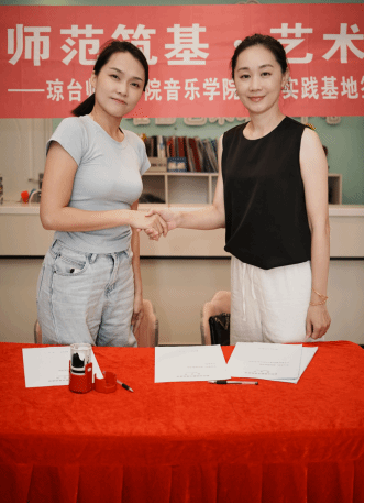 仪式由琼台师范学院音乐学院副院长陈怡主持。在与会嘉宾的共同见证下,琼台师范学院音乐学院艺术实践中心主任林燕妮与唯蕾艺术培训中心学校校长黄蕾女士分别代表双方签署了《共建实习实践基地合作协议书》,并共同为“琼台师范学院音乐学院实习实践基地”揭牌。现场响起热烈掌声,标志着双方合作迈出了坚实一步。
