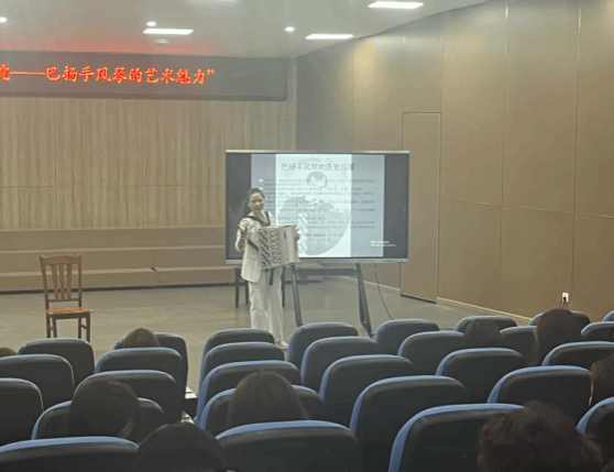孟楠老师从乐器操作与艺术表达双维度展开:操作层面拆解演奏姿势、风箱控制等核心技巧;艺术表达层面现场演奏《喀秋莎》《牧民之歌》,直观呈现手风琴在旋律、和声与情感传递上的优势,让新生深刻理解“乐器是艺术表达载体”。