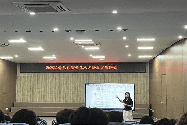 为了帮助2025级音乐表演专业新生明晰培养方案、找准专业方向,10月14日下午,音乐学院在学院音乐厅举办新生入学教育——专业解读与人才培养专题会。会议通过“培养方案解读+艺术实践体验”双环节设计,为新生搭建起专业认知与艺术探索的桥梁。