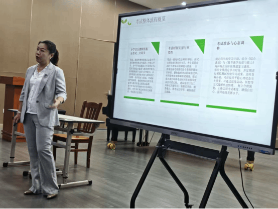 作为本次讲座的核心环节,庄小清副院长为同学们带来了满满的“干货”。凭借其长期深耕小学音乐教学法研究的深厚学术底蕴,以及多年担任海南省小学音乐教师资格证考试面试评委的丰富经验,庄院长从“考官视角”出发,为同学们深度解读了考试的详细要求、评分标准与面试技巧。讲座内容不仅涵盖了考试的理论知识框架,更结合大量实际案例,深入剖析了面试环节中的常见问题、易错点及应对策略,提供了平时在书本和理论中学不到的“真经”。庄院长的讲解高屋建瓴又深入浅出,现场同学们全神贯注,受益匪浅。
