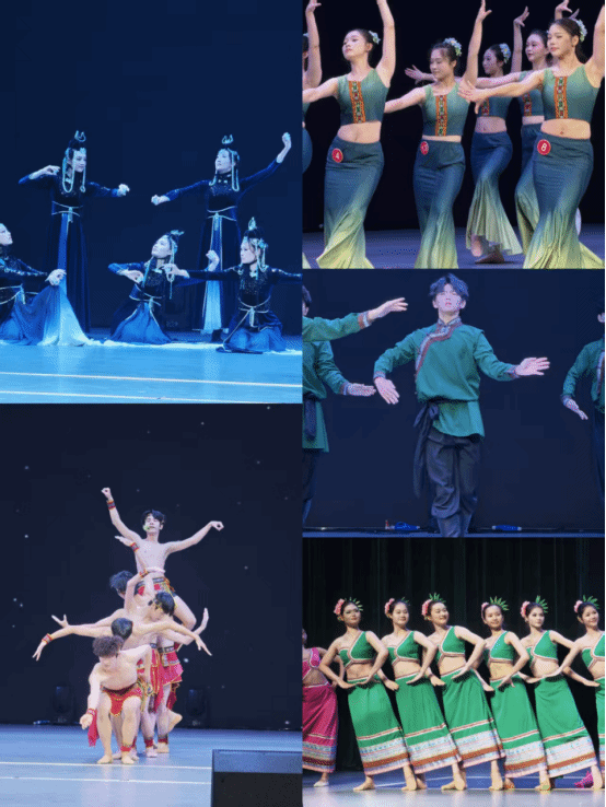 1月5日,汇报内容更为丰富多彩。民族民间舞板块涵盖了藏族舞的沉稳厚重、蒙古族舞的豪迈奔放、傣族舞的婀娜灵动,学生们较好地把握了不同民族的舞蹈风格与动作特质。随后的剧目排练展示,则综合运用所学技能,呈现了更具完整性和表现力的舞蹈作品,体现了从课堂训练到舞台表演的初步转化。