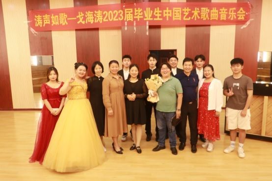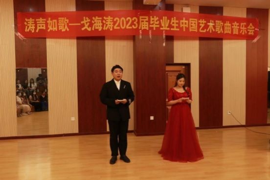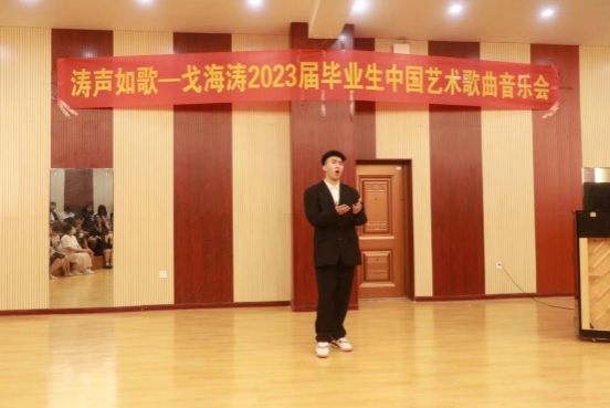 4月11日晚,琼台师范学院音乐学院合唱教室座无虚席,掌声雷动,由琼台师范学院主办,琼台师范学院音乐学院声乐教研室协办的“涛声如歌—戈海涛2023届毕业生中国艺术歌曲音乐会”在此拉开帷幕。本场音乐会由琼台师范学院音乐学院院长贾志宏担任总策划,琼台师范学院党总支书记刘才喜担任总顾问。音乐学院王磊、刘成、王琼州、宋超、邱明师老师以及海南省艺校戈曼丽老师出席了本场音乐会,与同学们一起欣赏了钟成、韦彬钰、刘润远、詹卫阳四位毕业生的精彩表演。音乐会由夏雷霆、敖馨文同学担任主持人,戈海涛副教授担任声乐指导,张晓璐老师担任钢琴艺术指导。音乐会曲目由三部分组成,第一部分为中国三十四十年代艺术歌曲,第二部分为中国古诗词歌曲,第三部分为中国近现代艺术歌曲。同学们在音乐会上分别演唱了《思乡》、《青玉案•元夕》、《两地曲》、《玫瑰三愿》、《嘉陵江上》、《望乡词》、《乡音乡情》、《战士为国守安详》等曲目。(撰稿人:戈海涛)