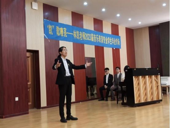 2023年3月31日晚,由琼台师范学院主办,琼台师范学院音乐学院声乐教研室协办的“凯歌嘹亮——林凯老师2023届音乐表演专业学生毕业音乐会”在琼台师范学院音乐学院合唱教室里精彩上演。